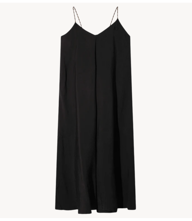 Relaxed fit midi jurk met smalle bandjes, gemaakt van smooth modal. Voorzien van een V-hals met smalle schouderbandjes van koord en een ‘10’ monogram borduring op de linkerborst.