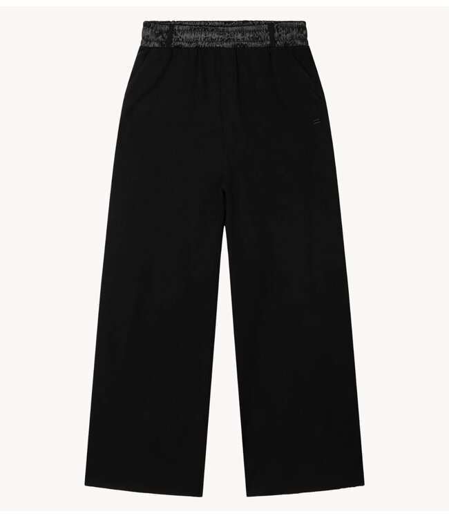 Relaxed fit wide leg jogger, gemaakt van zachte katoenen babyfleece. Voorzien van een elastische satijnen tailleband, riemlussen, opgestikte steekzakken en een mini stripes logo borduring op de linker steekzak.