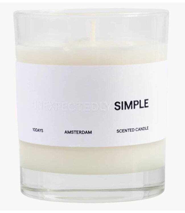 SIMPLE geurkaars van 10DAYS. Een ode aan de schoonheid van moeiteloze stijl en onafhankelijkheid. Het vangt levendige, tijdloze eenvoud met een verfijnde touch en weerspiegelt een levensstijl van vrijheid en bewuste keuzes. Embrace the Unexpected, Celebrate the Simple. 180G - 6.34 oz.