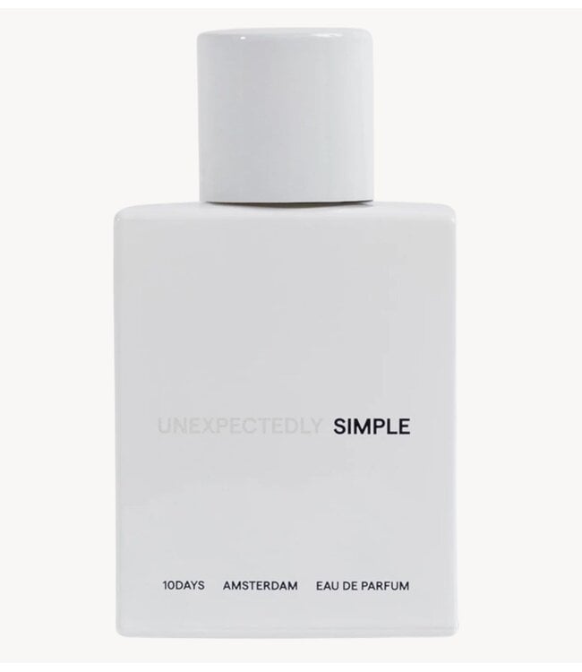 SIMPLE - 50ML unisex eau de parfum van 10DAYS. Een ode aan de schoonheid van moeiteloze stijl en onafhankelijkheid. Het vangt levendige, tijdloze eenvoud met een verfijnde touch en weerspiegelt een levensstijl van vrijheid en bewuste keuzes. Het parfum kan zowel afzonderlijk als in combinatie met de UNEXPECTEDLY geur worden gebruikt. TOPNOTEN: Grapefruit, bergamot, sprankelende zwarte bes. MIDDENNOTEN: Poederachtige Iraanse roos, yerba mate en violette bloemen. BASISNOTEN: Diep Virginiaans cederhout, warme kaneel en aardse patchouli.