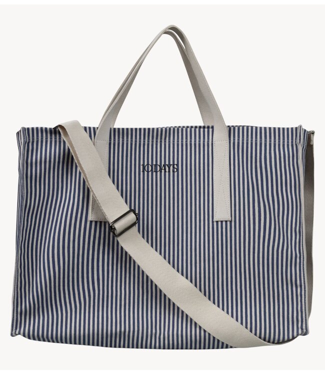 Canvas shopper van 10DAYS in wit met blauwe strepen, ruim en duurzaam, perfect voor een casual en stijlvolle dagelijkse tas.