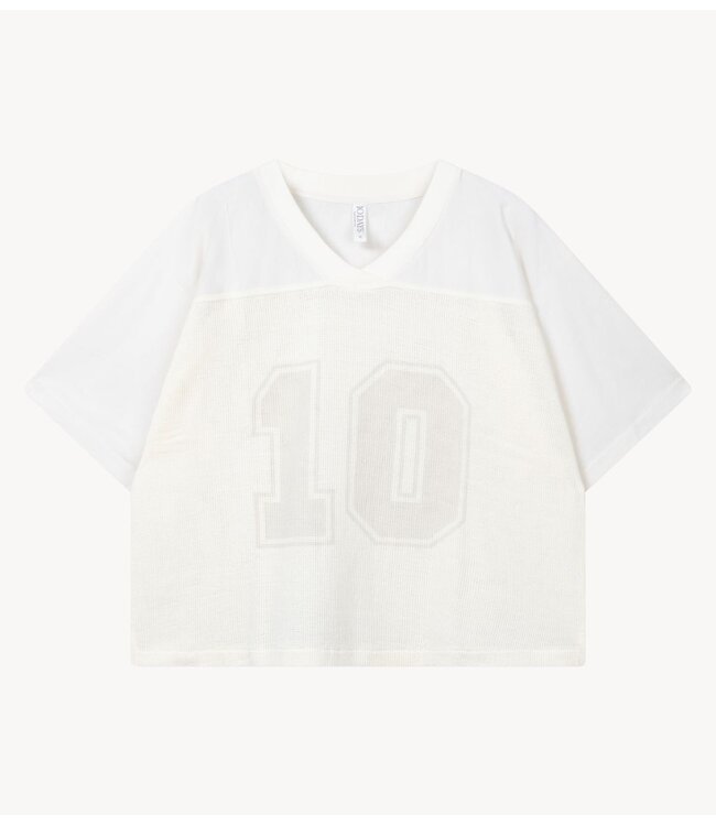 Mesh Baseball Tee van 10DAYS in ecru met een luchtige mesh stof en relaxte pasvorm, ideaal voor een sportieve en stijlvolle look.