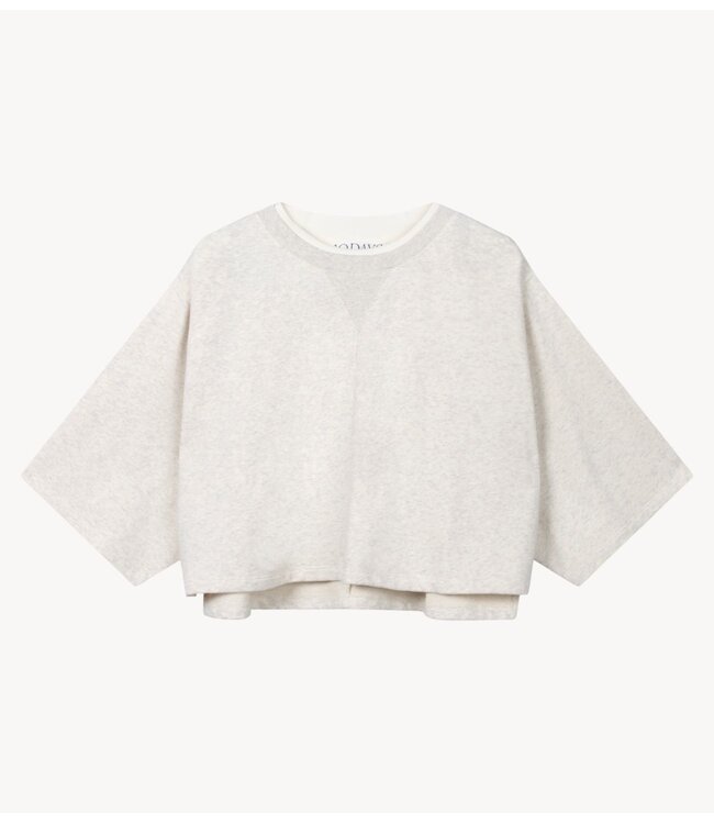 Shoulder Gathering Tee van 10DAYS in soft white melee met een vrouwelijke pasvorm en subtiele schouderdetails, ideaal voor een elegante en casual look.