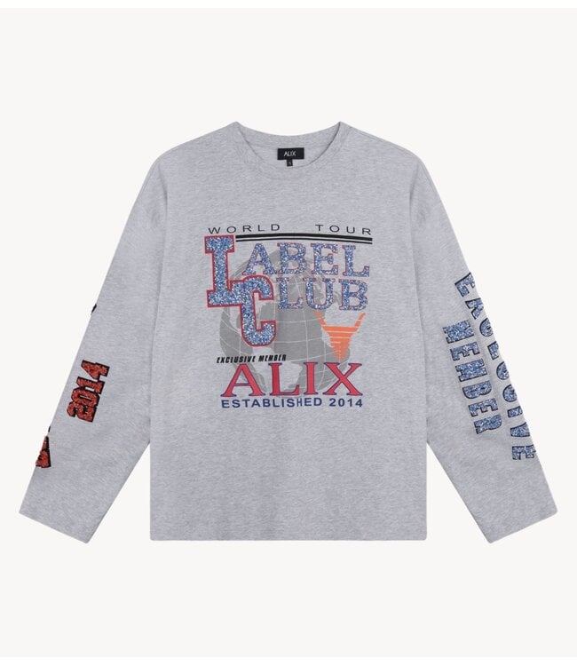 Knitted Fancy Print Longsleeve T-shirt van Alix The Label in light grey met comfortabele pasvorm en opvallend dessin, ideaal voor een stijlvolle en casual look.