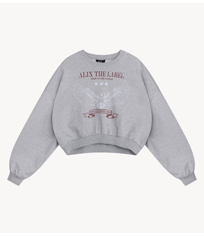 Trui gemaakt van katoenen sweatstof. Met een afbeelding van een adelaar aan de voorkant en een afbeelding van 'WORLD TOUR' aan de achterkant. Combineer met mijn hippe jeans voor een complete look.