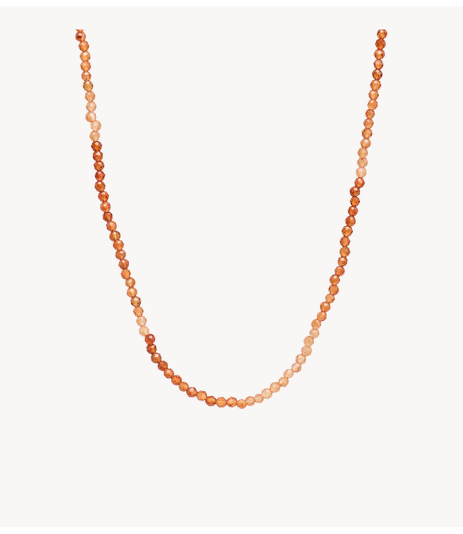 Anna+Nina Ketting Hessonite Gemstone Necklace Gold Plated. De ketting met hessoniet edelsteen is een echte blikvanger met zijn warme kleuren. De diepe oranje-bruine tinten van de hessoniet edelstenen geven direct een gevoel van rust en kracht. Deze ketting is perfect om alleen te dragen of te combineren met je favoriete bedeltje.