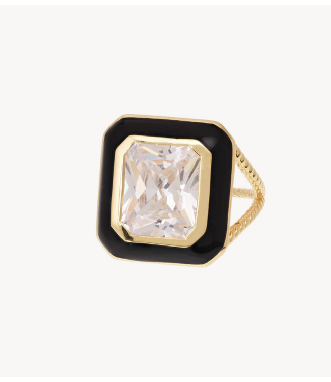 Anna+Nina Ring Alba Nero Ring Gold Plated. De Alba Nero ring is een opvallende aanwinst voor je sieradencollectie. De ring heeft een uniek ontwerp en een grote zirkonia-inleg. Dit is het perfecte item voor elke sieradenliefhebber.