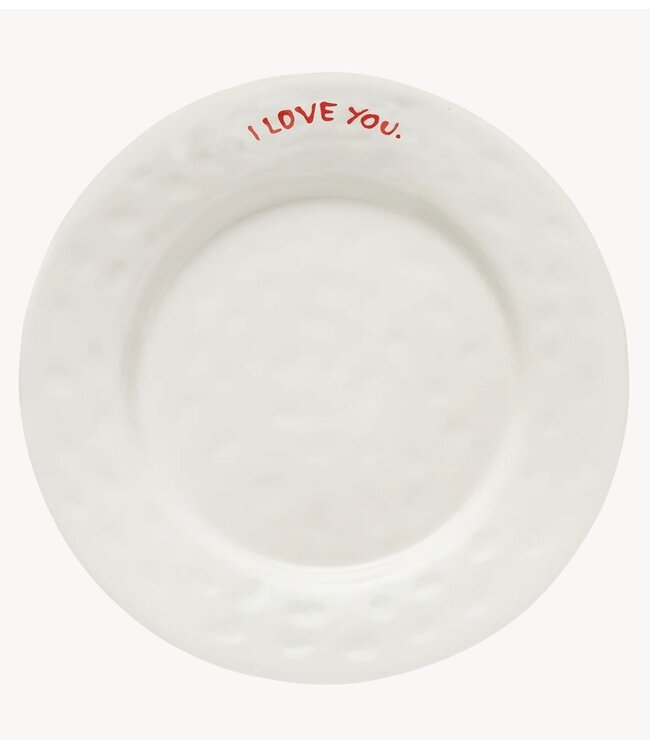 Crèmekleurige ontbijtbord van het merk Anna+nina. Het bord is handgeschilderd en is voorzien van de tekst 'I love you'.
