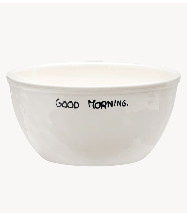 Crèmekleurige kom van het merk Anna+Nina. De kom is handgeschilderd en is voorzien van de tekst 'Good Morning'.