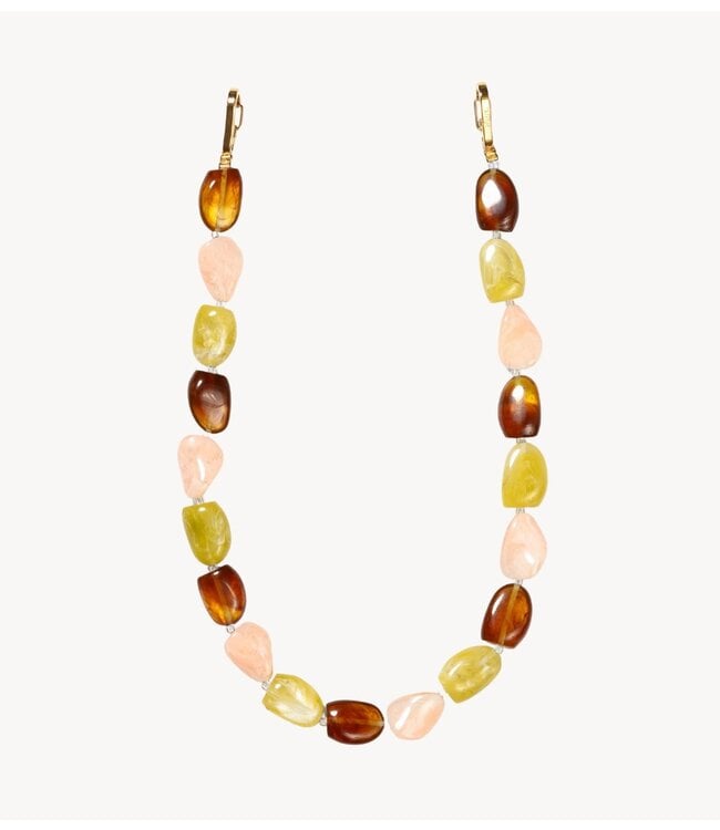 Schoonheid schuilt in de balans. Het Sway-koord danst tussen aardse elegantie en speelse charme. Denk aan mosgroen, roze en zachtbruin, die geaard aanvoelen, maar toch vol mogelijkheden zitten. Moeiteloos te dragen als ketting en telefoonkoord.