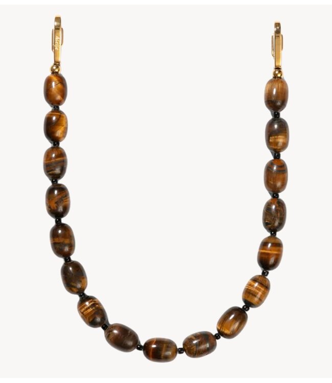 Tiger Eye heeft rijke, schildpadkleurige kralen die warmte en subtiele elegantie toevoegen aan je dagelijkse outfit. Het houdt je telefoon veilig en geeft je telefoon een licht vintage, maar toch luxe uitstraling. Klassiek, maar zeker niet saai.