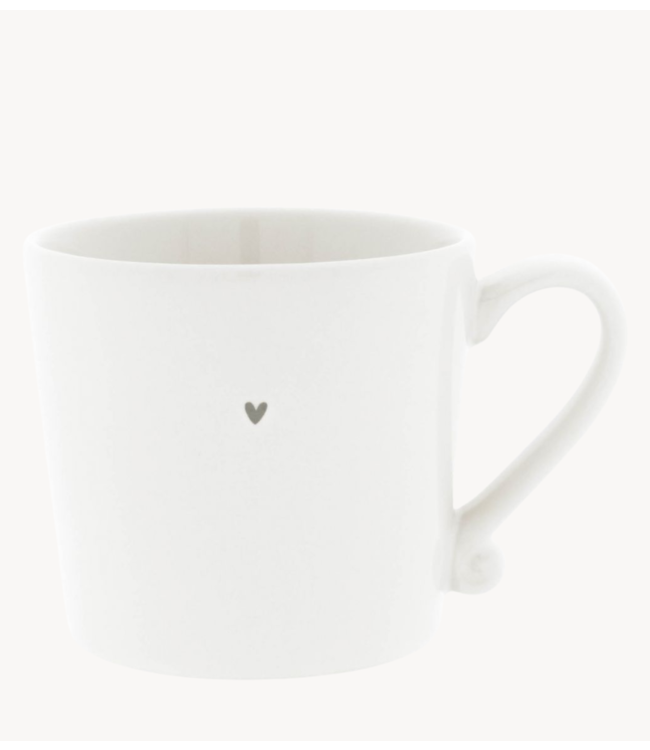 Witte mok van het merk Bastion met grijs hartje op de voorkant.