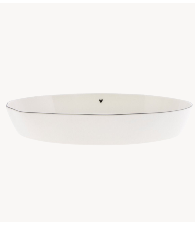 Witte schaal van het merk Bastion met zwart hartje aan de binnenkant van de schaal.