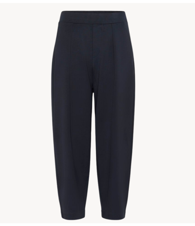 Donkerblauwe broek van InWear in een ballonmodel. Voorzien van bandplooien, steekzakken en een enkellengte voor een moderne, vrouwelijke look.