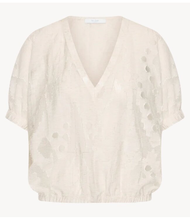 De mabel mist blouse combineert een casual fit met een comfortabele normale pasvorm en een flatterende v-halslijn. Met ellebooglange mouwen en subtiel borduurwerk is deze blouse perfect voor een moeiteloze, stijlvolle look die je de hele dag draagt. Dankzij de iets strakkere onderkant krijgt de blouse een puffer effect en is hij op verschillende manieren te stylen