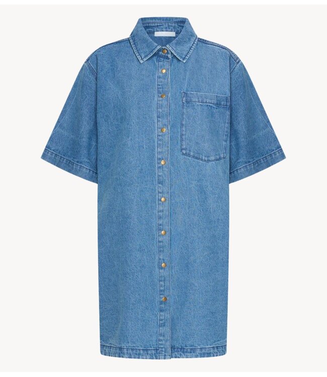 lexia denim dress is een casual jurk met een rechte pasvorm en korte mouwen, ideaal voor een ontspannen en veelzijdige look. De jurk heeft een comfortabele knoopsluiting en een praktische steekzak aan de voorkant. Perfect voor dagelijks gebruik, combineer je stijl moeiteloos met deze tijdloze denim jurk.
