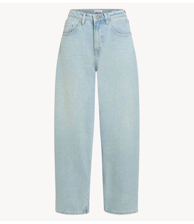 Lichtblauwe barrel jeans met een wide leg en cropped lengte.