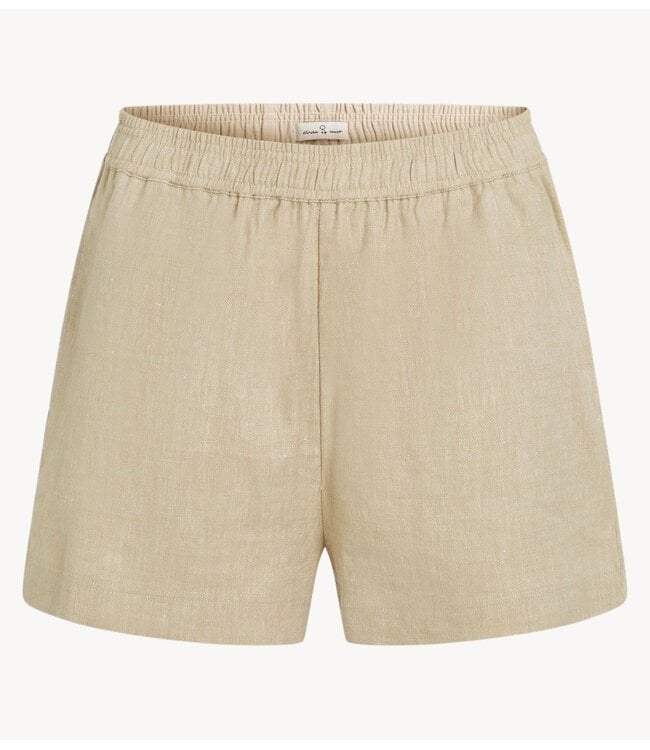 Luchtige dames short gemaakt van een mix van linnen en katoen in het warm beige. De Suzie short heeft een loose fit met elastische tailleband en steekzakken. Beschikbaar in verschillende tinten.