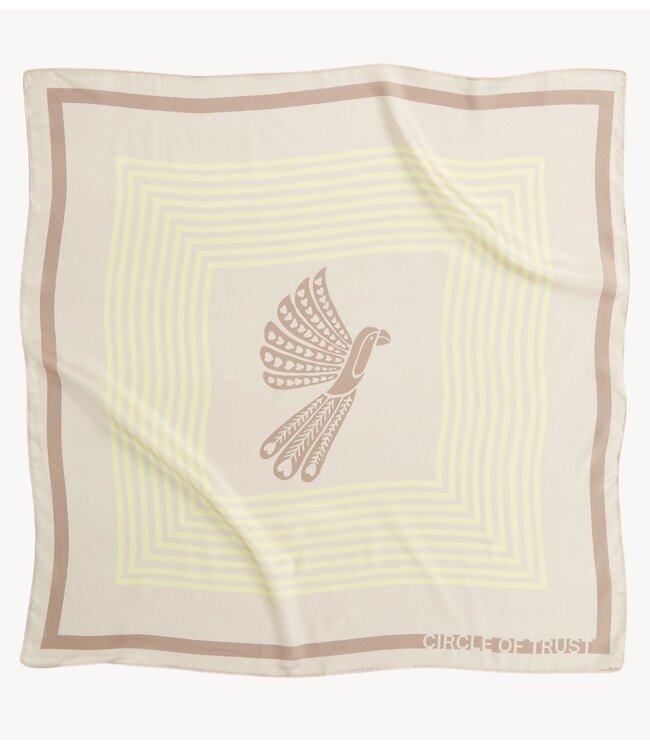 Vierkant satijnen dames sjaaltje uitgevoerd in het creme, geel en bruin. De Jazz scarf is afgewerkt met een decoratieve vogel. In meerdere prints verkrijgbaar.