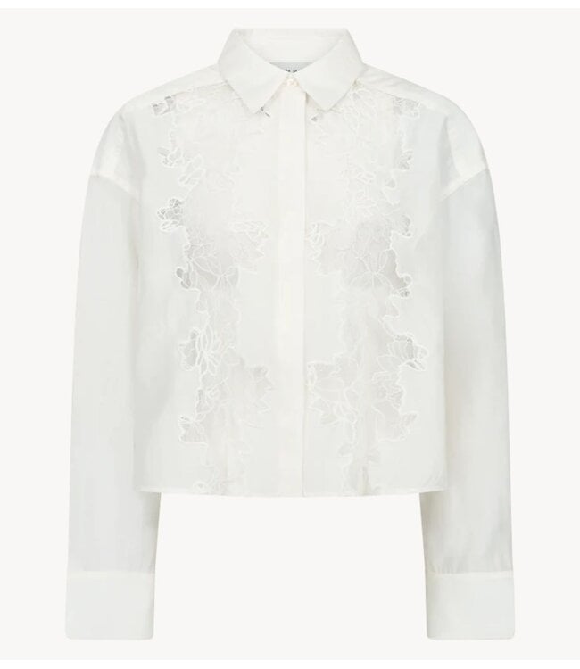 Blouse van het merk Copenhagen Muse. Het CMMOLLY-SHIRT is een overhemd van hoogwaardig materiaal met een losse pasvorm, een verborgen knoopsluiting, een kraag met plooien, lange mouwen met verlaagde schouders en geborduurde details op de voorkant.