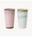 De mug uit de 70's, geïnspireerd door kunststromingen als popart, surrealisme en abstracte vormen. Afgewerkt met uitgesproken glazuren en een gladde structuur. Met een inhoud van 300 ml, ideaal voor een latte of koffie met extra melk en schuim.