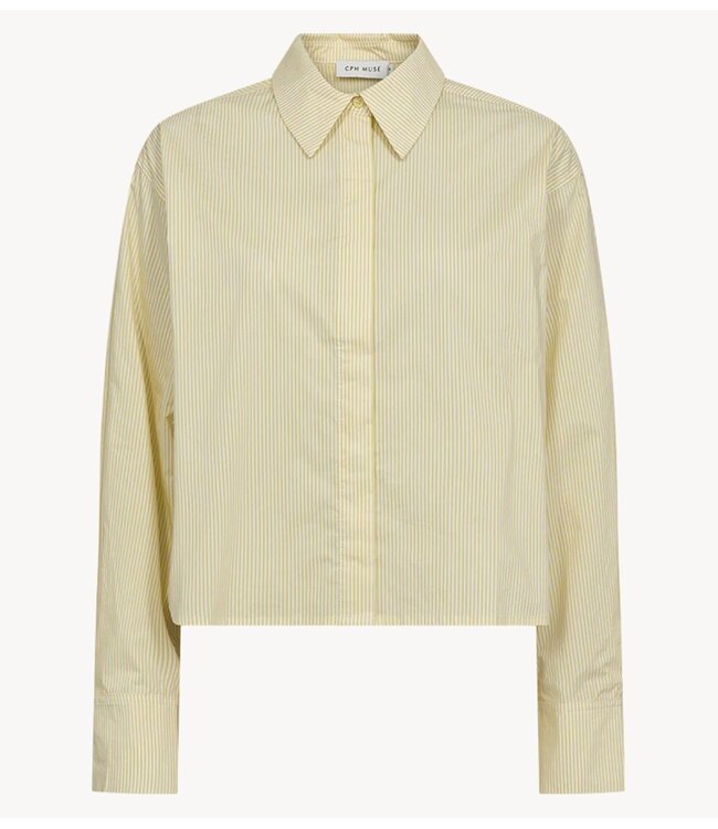 Het CMBLAIRE-SHIRT is een cropped shirt van hoogwaardige, geweven en geverfde stof met een verborgen knoopsluiting aan de voorkant, een rechte, oversized pasvorm en lange mouwen met verstelbare manchetten.