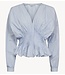 De CMPOPLIN-BLOUSE is gemaakt van stevig geweven katoenpoplin met een sculpturaal silhouet. De diepe V-hals wordt gecompenseerd door volumineuze, lange vleermuismouwen met manchetten met knoopjes. De volledig geplooide taille accentueert en definieert de vorm. Een geplooide peplumzoom zorgt voor beweging en een verfijnde, architectonische afwerking, compleet met een onzichtbare ritssluiting in de zijnaad.