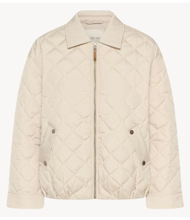 Gewatteerd jack met een rechte, licht boxy pasvorm en een puntkraag. Voorzijde met zichtbare ritssluiting en twee schuine zakken met drukknoopsluiting. Lange mouwen met brede manchetten en overal een ruitstiksel.