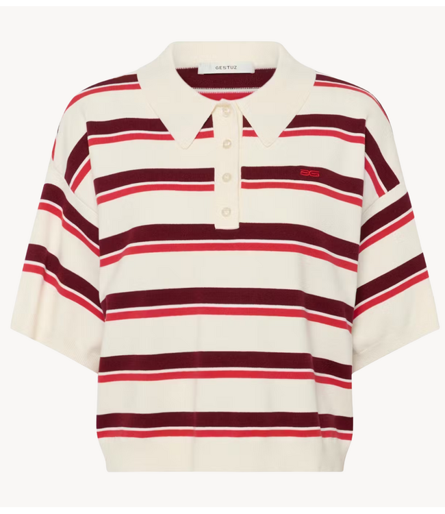Multicolor polo-top van Gestuz in Egret, Cabernet en Poinsettia met korte mouwen en een comfortabele pasvorm, ideaal voor een klassieke maar opvallende look.