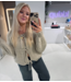 Olijfkleurig vest van het merk GUUS. Het vest heeft een striksluiting en lange mouwen.