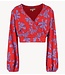 Korte wikkeltop met ballonmouw in een rood, paars gebloemde print van het merk Harper & yve.