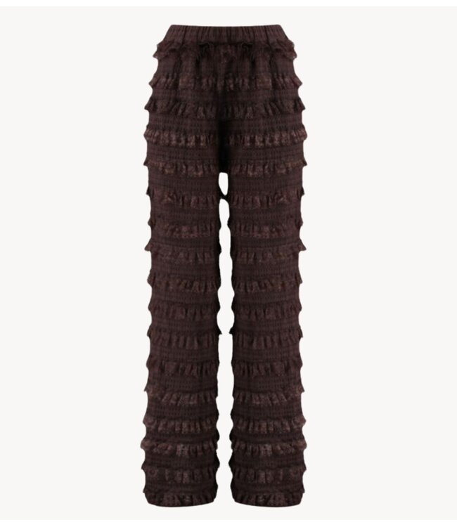 Broek van Harper & Yve. De welbekende LO pants in het bruin. Dé broek die niet mag ontbreken in je kast voor al je najaarsfeestjes. De elastische tailleband zorgt voor een comfortabele fit, terwijl de luchtige stof soepel meebeweegt met elke stap. De speelse ruches geven de broek die typische Harper & Yve-touch: opvallend, vrouwelijk en fun.