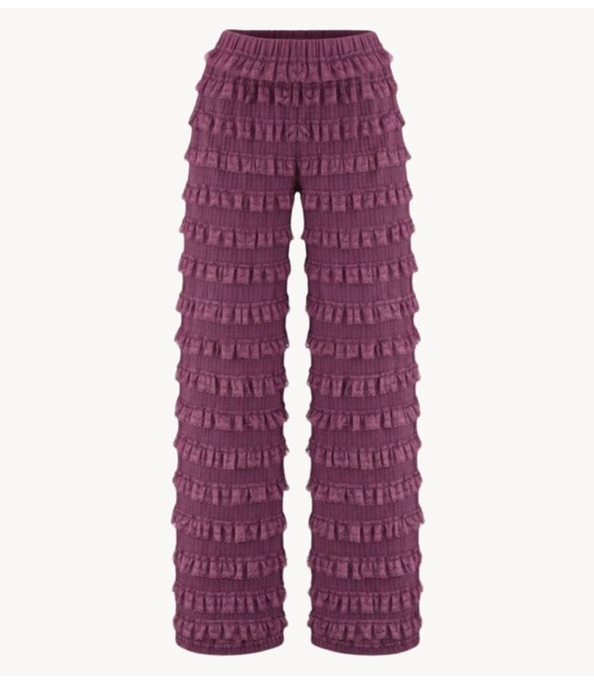 Guess who’s back? De welbekende LO pants is terug, dit keer in de kleur cassis. Dé broek die niet mag ontbreken in je kast voor de komende lente. De elastische tailleband zorgt voor een comfortabele fit, terwijl de luchtige stof soepel meebeweegt met elke stap. De speelse ruches geven de broek die typische Harper & Yve-touch: vrouwelijk en net even anders.