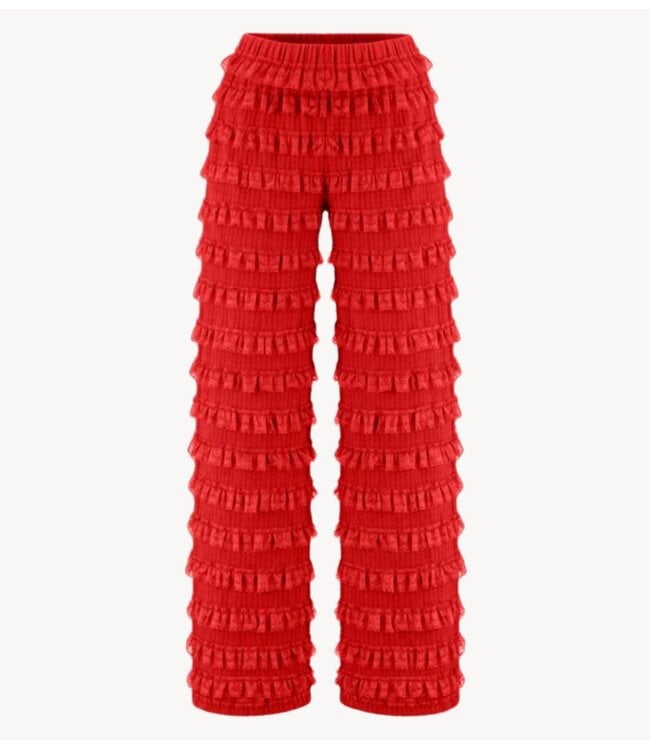 Guess who’s back? De welbekende LO pants is terug, dit keer in de kleur High Risk Red. Dé broek die niet mag ontbreken in je kast voor de komende lente. De elastische tailleband zorgt voor een comfortabele fit, terwijl de luchtige stof soepel meebeweegt met elke stap. De speelse ruches geven de broek die typische Harper & Yve-touch: vrouwelijk en net even anders.