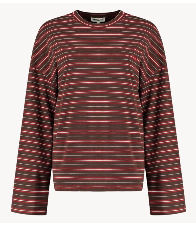 Bold contrast with everyday comfort. De TOMMY longsleeve in saddle brown met rode accenten is gemaakt van een zachte, comfortabele stof en heeft een relaxte pasvorm. Het kleurcontrast geeft dit item een speelse en moderne uitstraling. Perfect om casual te dragen of te combineren met een statement broek.