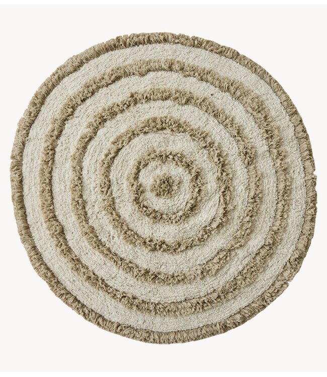 Badmat in een crèmekleur van het merk HKliving. De badmat heeft een ronde vorm en een opstaand patroon dat contrasteert met de lage, zachte mat. Verkrijgbaar in twee verschillende maten.
