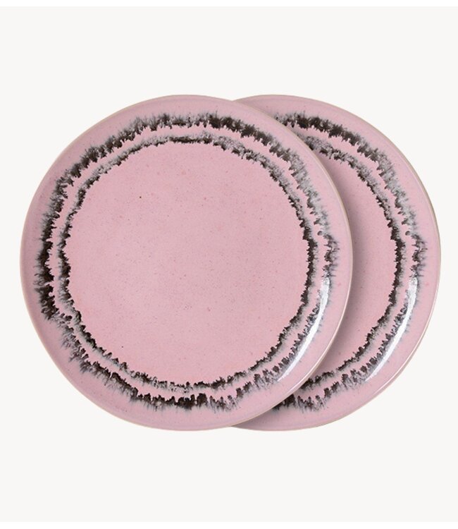 Een klein bordje met een zachte maar expressieve uitstraling. Dit dessertbordje uit de keramiekcollectie van de jaren 70 is perfect voor het serveren van zoetigheden, gebak of kleine hapjes. De Bubble-afwerking heeft een zachtroze glazuur, omlijst door een donkerdere, organische ring, waardoor een subtiele spanning ontstaat tussen zachtheid en contrast. Speels, warm en een beetje onverwacht – ideaal om een licht accent aan uw tafelsetting toe te voegen.