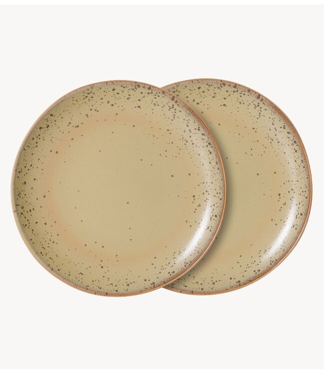 Functionaliteit voor elke dag met een bijzondere uitstraling. Dit zijbordje uit onze keramiekcollectie uit de jaren 70 is ideaal voor ontbijt, desserts of kleinere gerechten. De Grit-afwerking heeft een warme, zandkleurige basis met subtiele spikkels over het oppervlak, waardoor het bordje een tactiele, doorleefde uitstraling krijgt. Het is evenwichtig en makkelijk te combineren, voegt een ingetogen karakter toe aan de tafel en past moeiteloos bij zowel zachtere als meer expressieve afwerkingen.