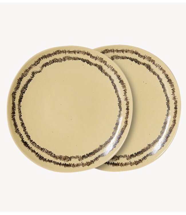Eenvoudig, warm en makkelijk te combineren. Dit dessertbordje uit onze jaren 70 keramiekcollectie heeft de perfecte afmetingen voor ontbijt, desserts of kleine hapjes gedurende de dag. De vanillekleurige afwerking heeft een zachte, romige tint, omlijst door een subtiele, handgetekende rand die net genoeg detail toevoegt. Subtiel en veelzijdig, het past naadloos bij opvallendere kleuren of zorgt voor balans in een gelaagde tafelsetting.