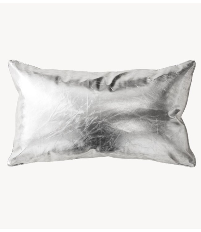Dit reflecterende en onverwachte kussen met metallic look speelt de hele dag door met het licht. Het zacht gekreukte oppervlak wisselt tussen subtiele glans en een opvallend contrast, waardoor uw zithoek een bijna sculpturaal karakter krijgt.