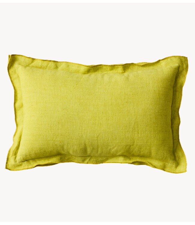 Een levendig linnen kussen dat kleur brengt zonder de kamer te overheersen. De strakke afwerking en natuurlijke textuur zorgen voor een balans tussen opvallend en eenvoudig, waardoor het gemakkelijk te combineren is.