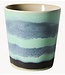 Gelaagde strepen in groen, grijs en zachtblauw geven deze mok zijn kenmerkende, vloeiende karakter. Het glazuur lijkt bijna op een landschap en verandert subtiel vanuit elke hoek. Een opvallend maar harmonieus ontwerp waardoor zelfs een snelle kop koffie een weloverwogen moment wordt.
