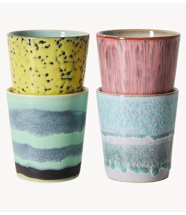 Deze set koffiemokken viert de schoonheid van variatie. Elke mok heeft een eigen, expressief glazuur, waarbij gelaagde kleuren en vloeiende texturen van elke slok een klein visueel moment maken. De vertrouwde vorm biedt een comfortabele grip, terwijl de artistieke afwerkingen een onverwachte twist geven aan uw dagelijkse koffieritueel. Ontworpen om moeiteloos te combineren op tafel, maar toch onderscheidend genoeg om op zichzelf te staan.