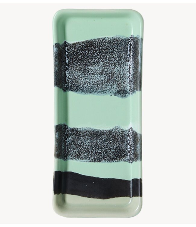 Met zijn langwerpige vorm en gelaagde, vloeiende glazuur voelt het kleine schaaltje River dynamisch maar toch evenwichtig aan. De afwerking doet denken aan sediment dat zich in de loop der tijd heeft afgezet, waardoor het stuk diepte en dynamiek krijgt. Perfect om te serveren of als decoratie.