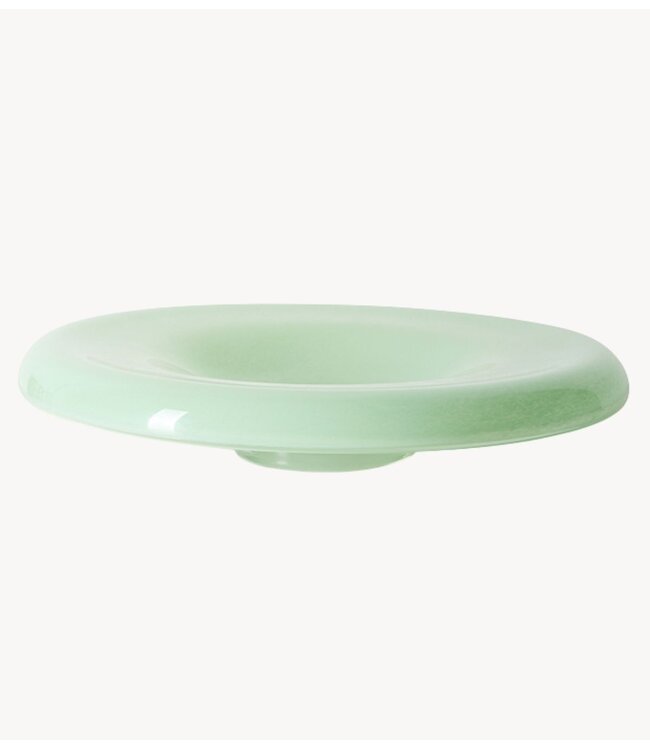 Meer object dan accessoire. Deze glazen schaal in een zachte, effen mintkleur geeft uw interieur een galeriewaardige uitstraling. Met zijn sculpturale vorm en rustige kleur verfraait hij moeiteloos een tafel, kast of dressoir. Ontworpen om vanuit elke hoek gezien te worden.
