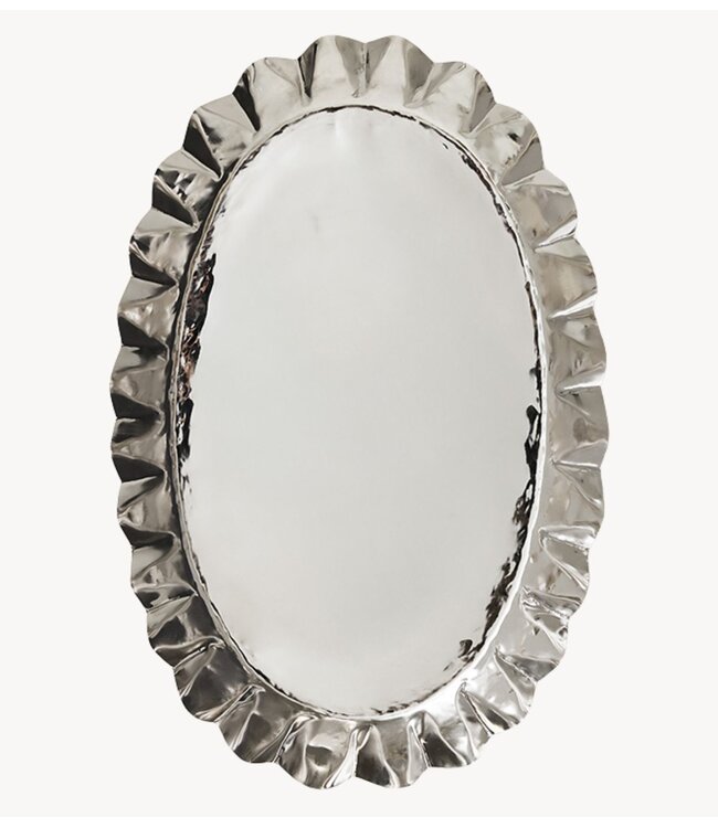 Geef uw interieur een stijlvolle upgrade met dit sculpturale chromen dienblad uit onze New Classics-serie. Groot maar verfijnd, is het zowel functioneel als decoratief – ontworpen niet alleen om gerechten op te serveren, maar ook om te presenteren. Hang het aan de muur als een elegant ornament of laat het de blikvanger op uw tafel zijn. Een statement piece met een tijdloze aantrekkingskracht.