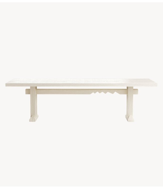 Een royaal oppervlak met een verfijnde uitstraling. Deze grote Forma eettafel brengt de geometrische signatuur van de collectie naar een ruim formaat. De parelmoerglans verzacht de strakke lijnen, terwijl de zichtbare houtnerf textuur en warmte toevoegt. Ideaal voor lange diners en gezellige momenten aan tafel.