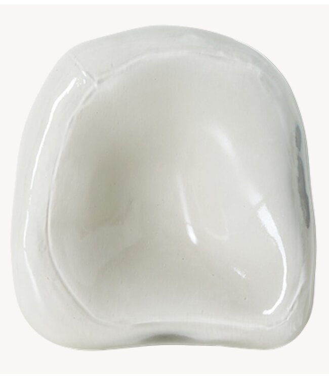 Deze glazen wandsculptuur in Overcast onderzoekt vloeiende vormen door middel van een zacht, gedempt oppervlak. De organische vorm introduceert ritme en diepte zonder te hoeven glanzen, wat resulteert in een kalme maar expressieve aanwezigheid. Of het nu aan de muur hangt of op een plank staat, het voegt een subtiele spanning en een modern karakter toe aan de ruimte.