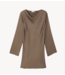 een kort aangesloten jurk met lange mouwen en watervalhals