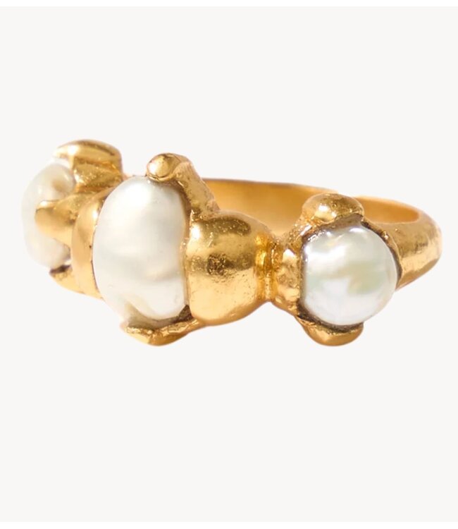 Onze Keanu-ring combineert antieke stijl, Parijse chique elegantie en speelse charme, met parels als centraal element.